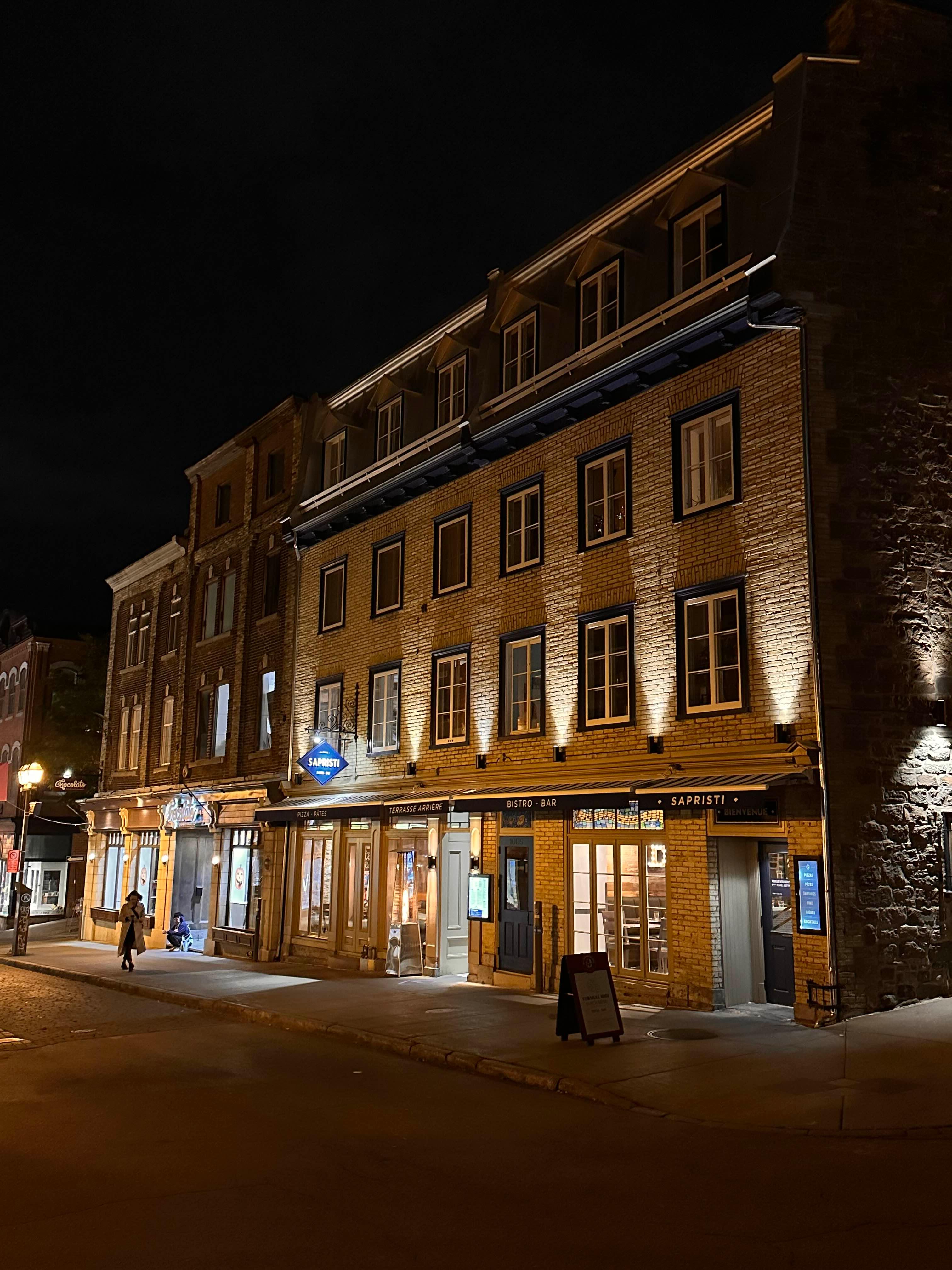 에어비앤비 체크인을 끝내고, 동네 밤 산책을 나왔습니다. 밤이었지만 퀘백은 몬트리올 보다 훨씬 작고 아기자기한 느낌이 강했어요.