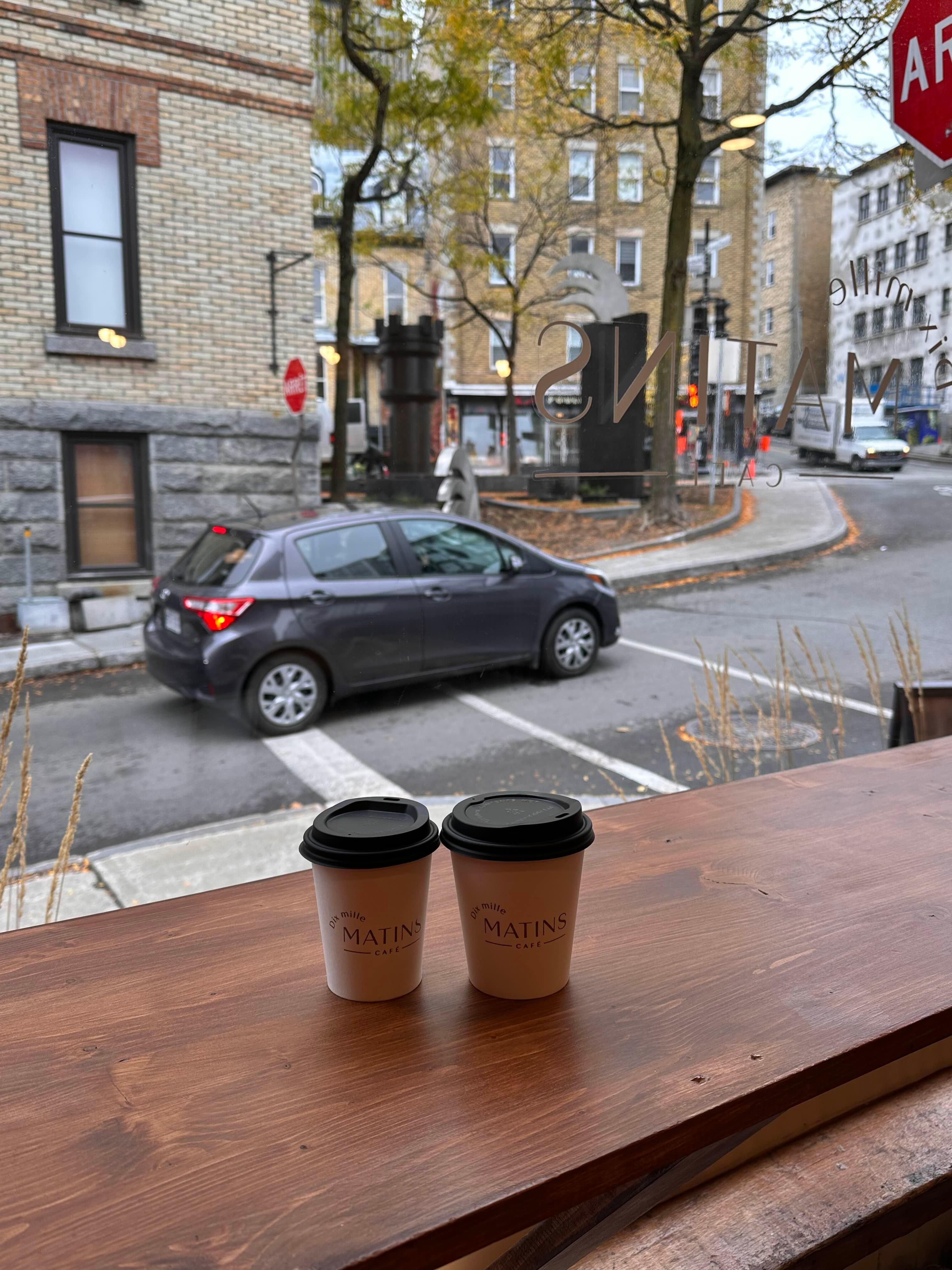 구글맵에서 발견한 유일한 카페! Matins에 들러 커피도 한 잔 했어요. 마침 주머니에 화이트하임 하나가 있길래 직원에게 한국에서 온 과자라며 건네줬습니다!